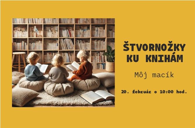Detičky a rodičia, "štvornožkovať" budeme spolu aj v o februári. V priestoroch detskej knižnice Slniečko na Slovenskej 18 a na všetkých sídliskových pobočkách Sídlisko 2, Sídlisko 3, Sekčov a Šváby sa stretneme v piatok 20. februára 2026 o 10:00 hod.